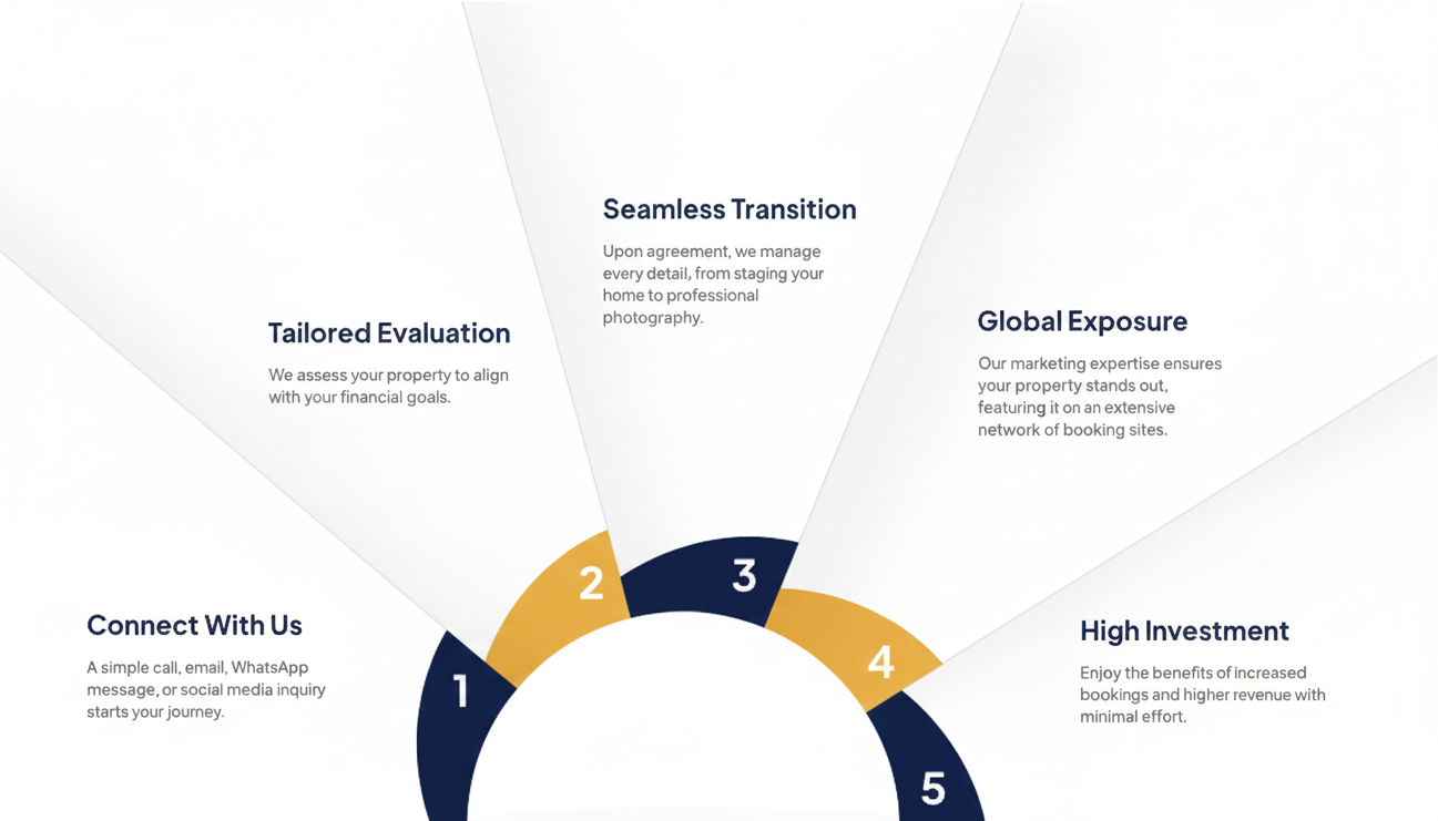 From handpicked premium properties with stunning views and world-class amenities, to full management services including professional marketing, global platform listings (Airbnb, Booking.com, Expedia), guest handling, maintenance, and maximized returns — we've got every detail covered so you can relax and enjoy the benefits.